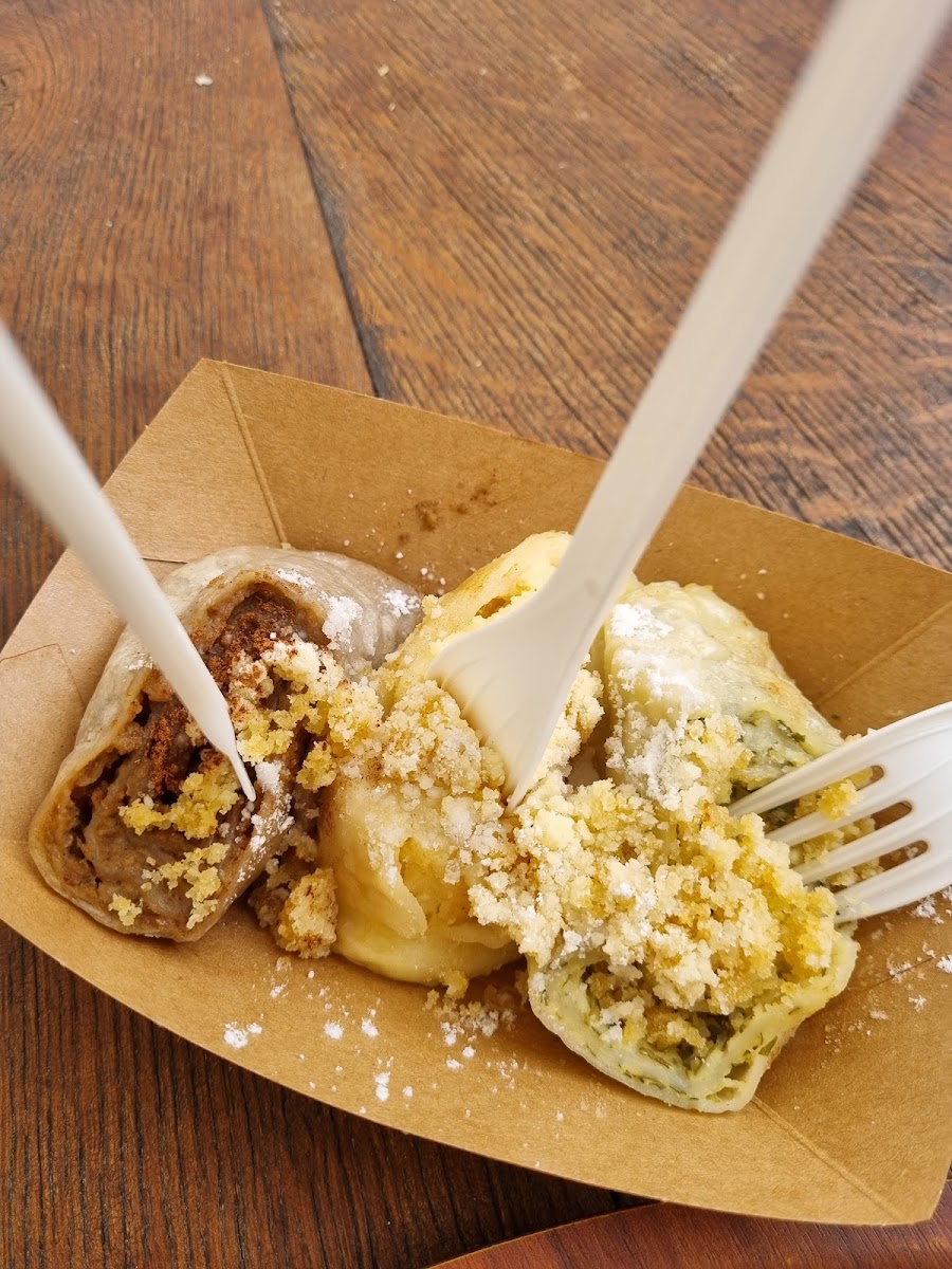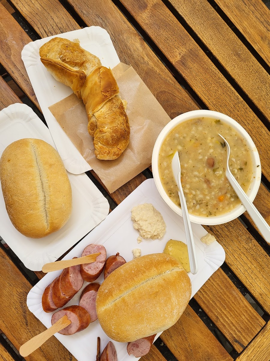 The most iconic sausage shop in Ljubljana Stopped by as soon as I arrived in Ljubljana. To dodge the crowds, I came just after opening and was one of only two groups eating there. The only downside of coming early was that every passing tour guide stopped in front of the shop to announce it as the most famous Klobasa spot in town, so there was no pretending this was a hidden gem. The food came out quickly, and there were plenty of outdoor tables to enjoy it (though they fill up completely by the afternoon). I ordered a half Klobasa, barley stew, and sweet rolls. It was a chilly morning, and dipping the sausage into the warm barley stew was pure comfort. The sweet rolls weren’t quite my thing (very chewy, almost like sticky rice) but the stew and Klobasa combo made the stop worth it.