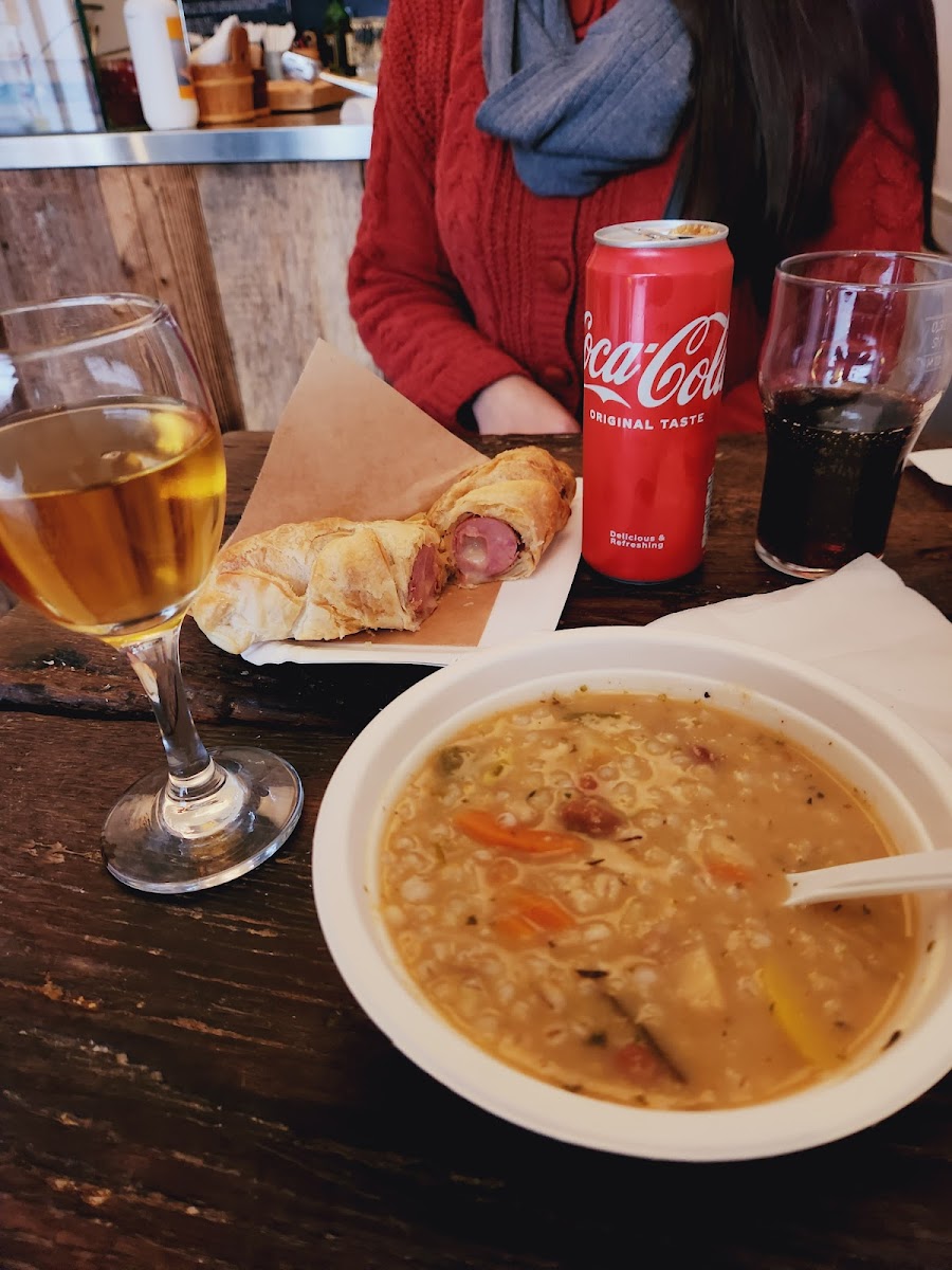 I loved this place so much I ate there 4 times in a week! The klobasa sausages are big and delicious. The jota , which is a sauerkraut stew was so appetizing, and goes perfectly with the sausages. I also loved the barley soup. It was extremely comforting on a cold winter afternoon. The sausages come with fresh bread, mustard and horseradish , all undeniably perfect condiments. It’s what I’d miss most leaving Ljubljana!!
